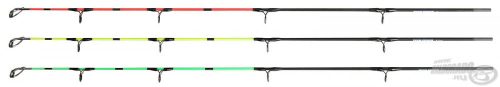 A spicckészletben megtalálható mindhárom rezgőspicc, a zöld 5 oz, a sárga 6.5 oz, a piros 8 oz erősségű.