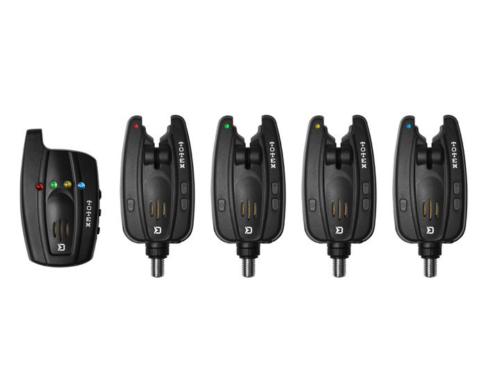 Rendkívül kompakt méretű jelző és vevő ergonomikus kialakításban. A Delphin TOTEM kapásjelző szett teljesen vízálló jelző és vevő melynek hatótávja 150m függően környezettől. A jelző rendkívül fényes LED-del rendelkezik, nagyon hosszú élettartammal. A kapásjelző 9V elemel működik, mely hosszú üzemidőt biztosít. Nagyon jó a figyelmeztető, rövid hangjelzés és a LED dióda világítása mely figyelmeztet az elem kapacitásának 5V alá való csökkenéséről (a vevő szintén jelez). A TOTEM lehetőséget nyújt az összes funkciójának a tesztelésére.A jelzőknek 4 hangerő szintje van beleértve a néma módot, 4 különböző hangszín és 4 érzékenységi szintje. Sötétben bizonyára értékelni fogja az éjszakai dióda bekapcsolásának lehetőségét. A 2,5mm jack csatlakozón keresztül csatlakoztathat elektromos láncos vagy merev karos kapásjelzőt. A vastag gumizás a bottal való érintkezésnél megakadályozza a bot károsodását. A jelző kapáskor 15 másodpercig világít(a vevő szintén). A vevő 3 darab AAA elemmel működik. A vevő hátulján egy eltávolítható klip van, mely segítségével fel tudja akasztani például az övére. A szett szállítására és szezonon kívüli tárolására kemény tok ár rendelkezésre melybe akár 4+1-es szett is belefér. A vevőnek 5 hangerő szintje beleértve a néma mód és 4 különböző hangszíne van. A TOTEM egy minőségi kapásjelző szett minden funkcióval melyre horgászatnál szüksége lehet. Az éjszakai LED, vízálló jelző és vevő, funkciók tesztelése és az elem gyengülésére figyelmeztető jelzés teszi kivételessé a Delphin TOTEM szettet.